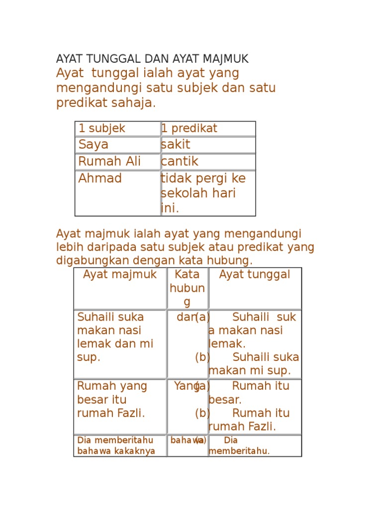 Ayat tunggal terdiri daripada satu subjek dan satu predikat. Contohnya seperti pelancong itu dari indonesia, gadis itu di atas ialah contoh ayat tunggal yang telah digabungkan subjek dan predikat menjadi binaan ayat. Ayat majmuk gabungan beberapa ayat tunggal diabungkan menjadi satu dengan menggunakan kata hubung seperti, dan, atau, tetapi, sambil dan sebagainya. Ayat tunggal & ayat majmuk tahun 2 udari krticu. Publish on 08th august 2019 category: Latihan ayat tunggal dan ayat majmuk. Rancangan pengajaran viewberdasarkan pola ayat dasar paparan kad ayat tunggal latih tubi membaca ayat dengan sebutan dan intonasi yang betul membina ayat berdasarkan gambar latih. (a) frasa nama sebagai subjek. Ayat majmuk gabungan salmi dan zaki adiknya belajar di sekolah menengah sains sultan mohamad jiwa, sungai petani, kedah. Ayat tunggal & ayat majmuk vrsta grupe. Santoso, soewito sutasoma dalam buku, a study in old javanese wajrayana (1975), menjelaskan semboyan. Ayat biasanya diakhiri dengan tanda noktah. Saya dan hamid mengulangkaji pelajaran di sekolah.