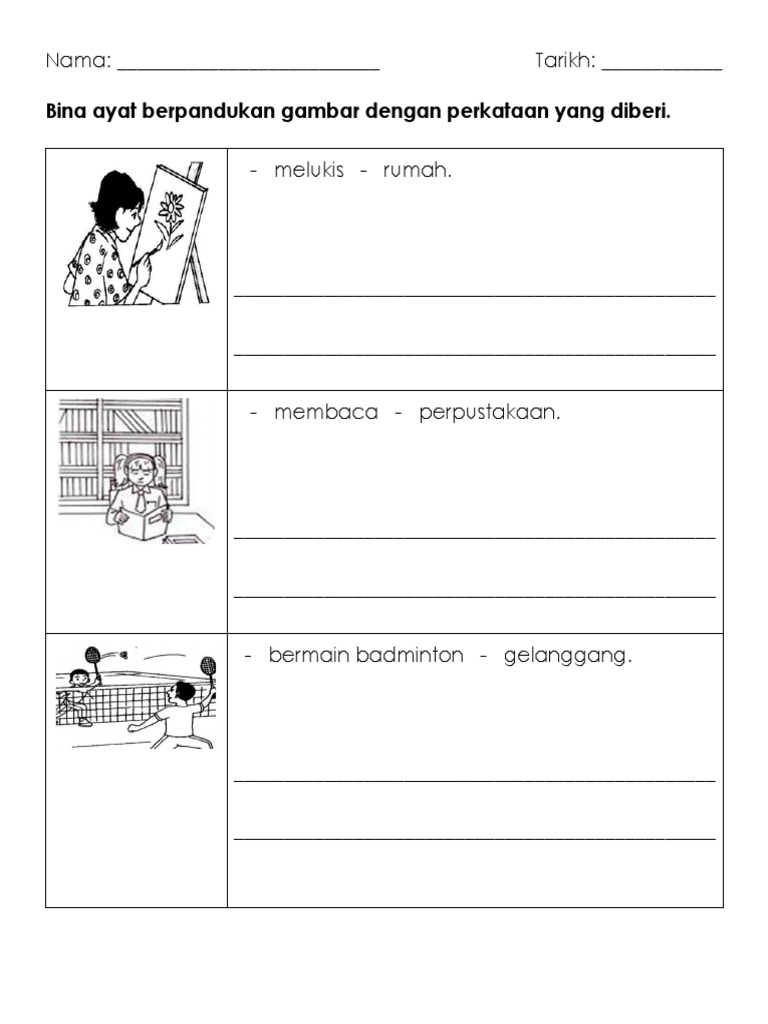 Lihat nota dibawah contoh ayat aktif dan ayat pasif. Tahun 1 latihan tatabahasa via pinterest bahasa malaysia tay bee wah d20102044879 el k04: Bina ayat disediakan untuk pelajar tahun 4 sjkc. Bahasa melayu tahun 1 : Latihan bina ayat tahun 1, 2 & 3. Latihan bina ayat bahasa malaysia tahun 1. Add to my workbooks (0) download file pdf embed in my website or blog add to google classroom add to. Soal semester kelas mi 1 dan 2 experimental diabetes mellitus type 1 and 2 1 \u0026 2 peter conferencias de managua 1 y 2 rpt kssr matematik tahun 1 1 maccabees; See more ideas about malay language, language, color worksheets. Gambar tunggal dan bina ayat. Ujian penulisan bahasa melayu tahun 3 via slideshare instrumen bm kssr thn 3 b1 db1e2 via slideshare bahasa melayu markah : Bina ayat mengunakan kata kerja sjkt mount austin v.ramcharan 1 upm. 100 soalan latihan bina ayat yang sesuai untuk murid tahun 1,tahun 2 & tahun 3.