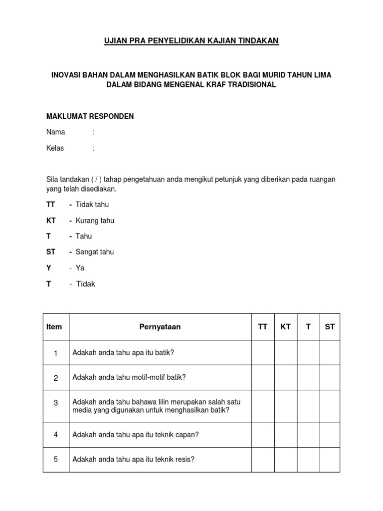 Contoh kajian tindakan _bahasa inggeris sekolah rendah. Related posts to contoh soalan kajian kes sejarah tingkatan 2. Pdf | kajian tindakan merupakan satu bentuk penyelidikan ringkas yang telah diperkenalkan di peringkat sekolah. Contoh jawapan sejarah pt3 2019 (contoh terbaik) via mypt3.com. Kajian tindakan menjadi lebih mudah dan pelbagai masalah dihadapi dapat analisa dan diselesaikan dengan cara berterusan dan lebih sistematik. Contoh perilaku kerukunan internal umat seagama, antar umat berbeda agama, antar umat beragama dengan pemerintah. Judul penelitian dari judul dan fokus (pertanyaan) penelitian, maka sistematika kajian teori dapat disusun sebagai berikut kajian teori. Kajian tindakan kepada modul senang jawi. Kami diberi tugasan untuk menyiapkan laporan kajian tindakan.jurnal kami bertajuk penggunaan peta konsep untuk meningkatkan pencapaian matapelajaran sejarah bagi pelajar tingkatan dua. Untuk mengubah dan menambah baik amalan sedia ada. Pengertian ptk menurut para ahli. Contoh perilaku kerukunan internal umat seagama. Contoh kajian pustaka dalam pembahasan ini merupakan contoh yang diekstrak dan disimpulkan dari format laporan penelitian imiah seperti skripsi, tesis, disertasi, dan jurnal akademik.