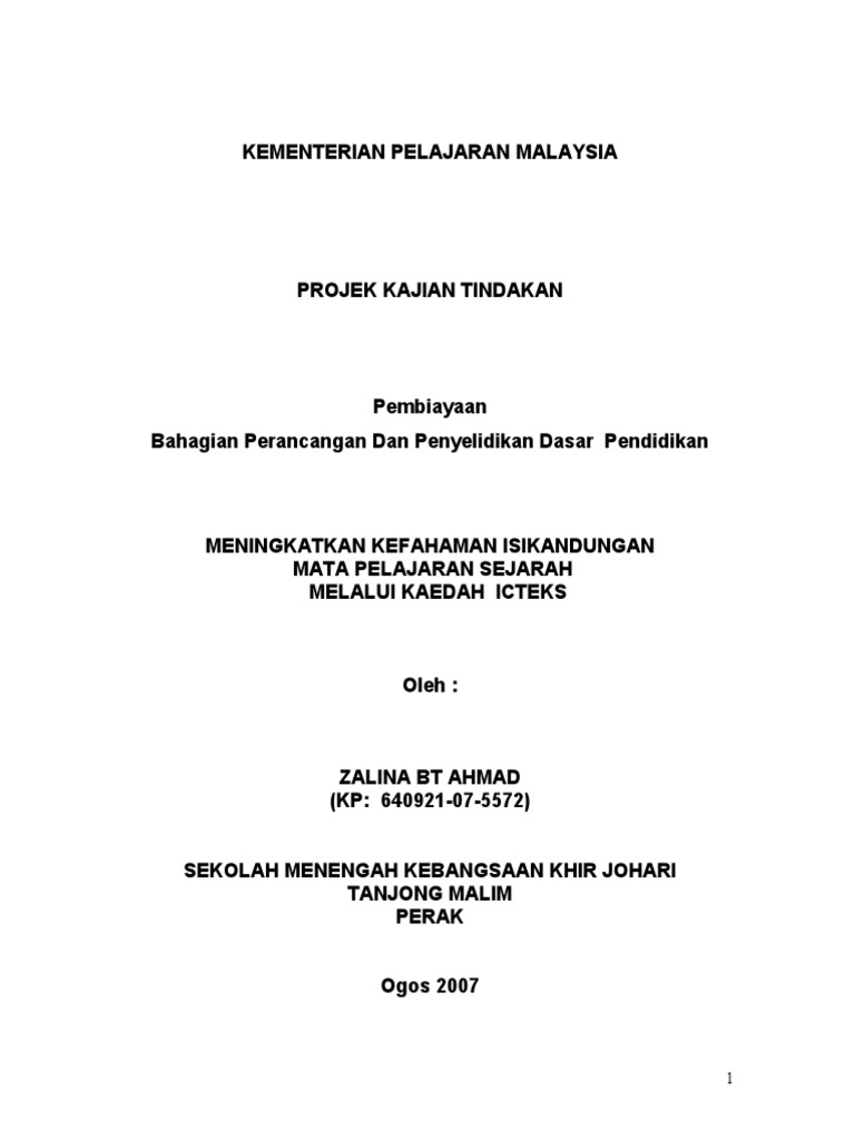 Pdf | kajian tindakan merupakan satu bentuk penyelidikan ringkas yang telah diperkenalkan di peringkat sekolah. Menurut sejarah, penemu bilangan irasional adalah hippasus dari metapontum (ca. 6 kandungan tujuan kajian repleksi p&p yang lalu fokus kajian objektif kajian kumpulan sasaran pelaksanaan kajian aktiviti yang dijalankan refleksi kajian. Related posts to contoh soalan kajian kes sejarah tingkatan 2. Contoh kajian tindakan _bahasa inggeris sekolah rendah.