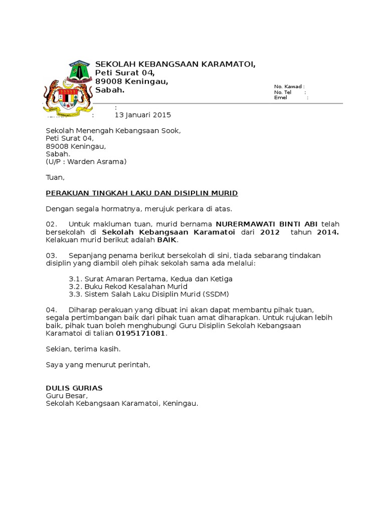 Surat Amaran 1 from imgv2-1-f.scribdassets.com Demikian surat lamaran pekerjaan ini saya buat, semoga saya diberikan kesempatan untuk melalui tahapan selanjutnya dalam seleksi penerimaan karyawan diperusahaan ini. Surat lamaran pekerjaan yang baik akan mendatangkan kesan yang baik pula, karena itu menjadi salah satu nilai plus bagi perusahaan atau instansi yang ditujukan. Contoh surat lamaran pekerjaan berikut ini kami sajikan kepada para pelamar atau pencari kerja agar lebih mudah dan cepat mengajukan lamaran sesuai dengan posisi jabatan atau pekerjaan yang ditargetkan. Demikian surat lamaran pekerjaan yang saya buat, sangat besar harapan saya agar bapak/ibu mempertimbangkan saya sebagai bagian dari perusahaan yang bapak/ibu pimpin. Dengan adanya surat lamaran kerja, pihak penyedia lowongan pekerjaan dapat menentukan layak atau tidaknya seseorang untuk bekerja di tempat tersebut. Nah, berikut ini beberapa contoh surat lamaran kerja marketing yang baik dan benar di berbagai perusahaan sebagai referensi hp : Contoh dari surat lamaran pekerjaan diatas merupakan surat lamaran pekerjaan untuk bekerja di restoran. Surat ini adalah dirujuk kepada mesyuarat tergempar yang diadakan pada 10 oktober 1988 mengenai isu kelewatan anda.