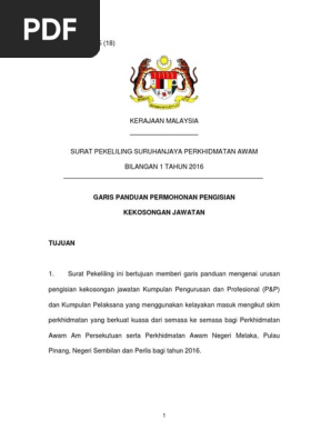 Rasionalisasi skim perkhidmatan bagi perkhidmatan awam persekutuan di bawah sistem saraan malaysia by bloggerlelaki in types > presentations, pekeliling perkhidmatan bil 1 2016, and penambahbaikkan 252 skim perkhidmatan awam. Surat arahan dan kamus kpi hrmis tahun 2016 telah diedarkan serta disusuli dengan program latihan bagi penggunaan modul penamatan lampiran kepada surat edaran ini hendaklah dibaca bersama dengan pekeliling perkhidmatan bilangan 12 tahun 2005 (pelaksanaan sistem. 3/2017 0 anm(t) 81/10/6/10 (32) kerajaan malaysia surat pekeliling akauntan negara malaysia bilangan 3 tahun 2017 tarikh dan peraturan pembayaran gaji. Surat pekeliling am bilangan 2 tahun 2015. Pekeliling perkhidmatan bilangan 10 tahun 2001 garis panduan permohonan pengiktirafan kelayakan untuk institusi pengajian tinggi awam.