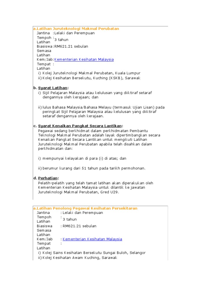 Permohonan untuk melanjutkan pengajian dalam program separa perubatan ini hanya dibuka secara online. Kolej teknologi makmal perubatan atau dikenali dengan nama pendeknya ktmp yang terletak di jalan pahang, kuala lumpur. Latihan penolong pegawai kesihatan persekitaran. Pendaftaran permohonan jawatan kosong latihan separa perubatan 2018 perlu melalui portal rasmi spa dengan mengisi borang spa8i. Muhammad ziqrill bin mohd zapri.