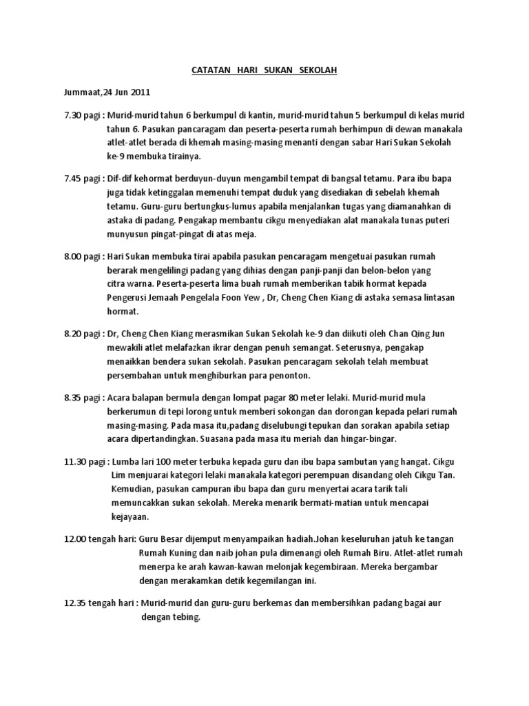 Karangan catatan hari sukan via dokumen.tips. Karena begitu semangat , olahraga tersebut dilakukannya setiap hari , dimulai dari olahraga ringan seperti. Marilah belajar karangan 7) hari sukan ~ 云妹小学堂. Sinopsis seronoknya ada hari sukan di sekolah. Sukan itu diadakan di padang sekolah yang luas itu.